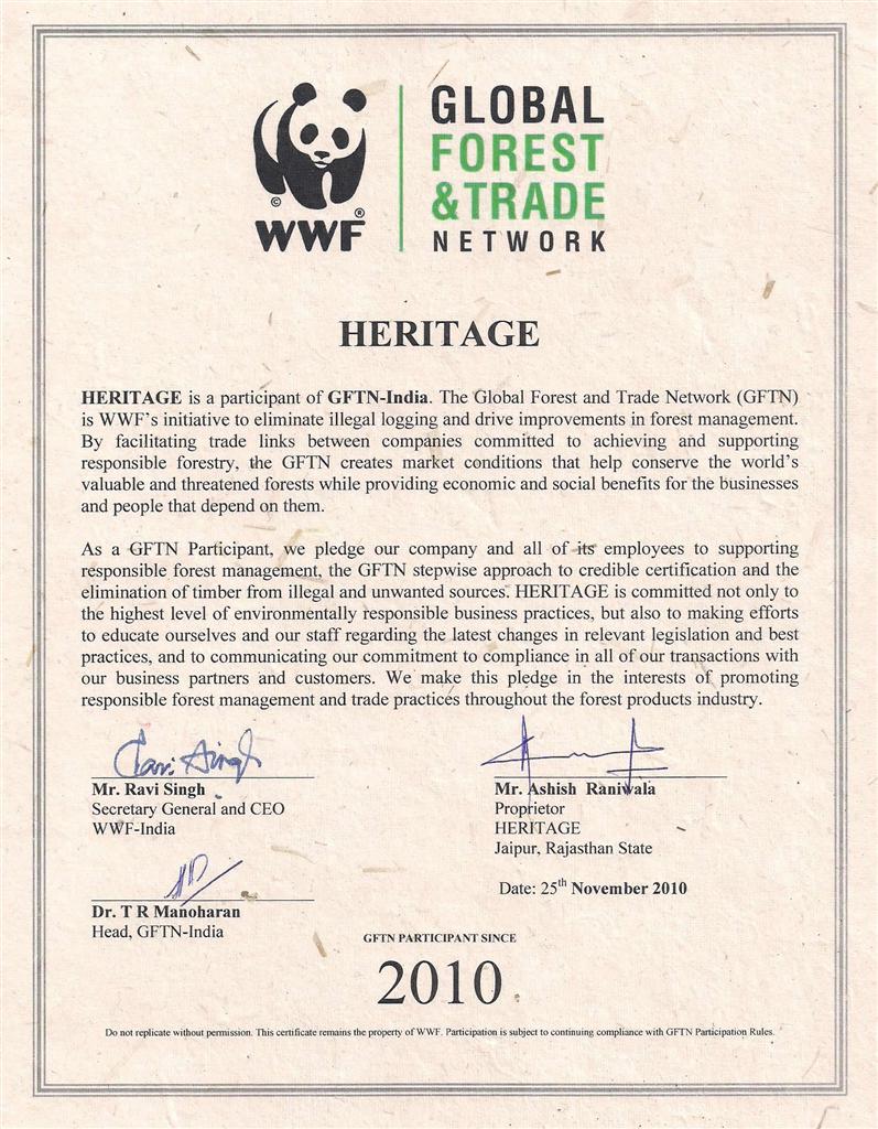 At Heritage, we are proud to be one of the 10 Indian companies selected for the WWF’s Global Forest & Trade Network (GFTN).